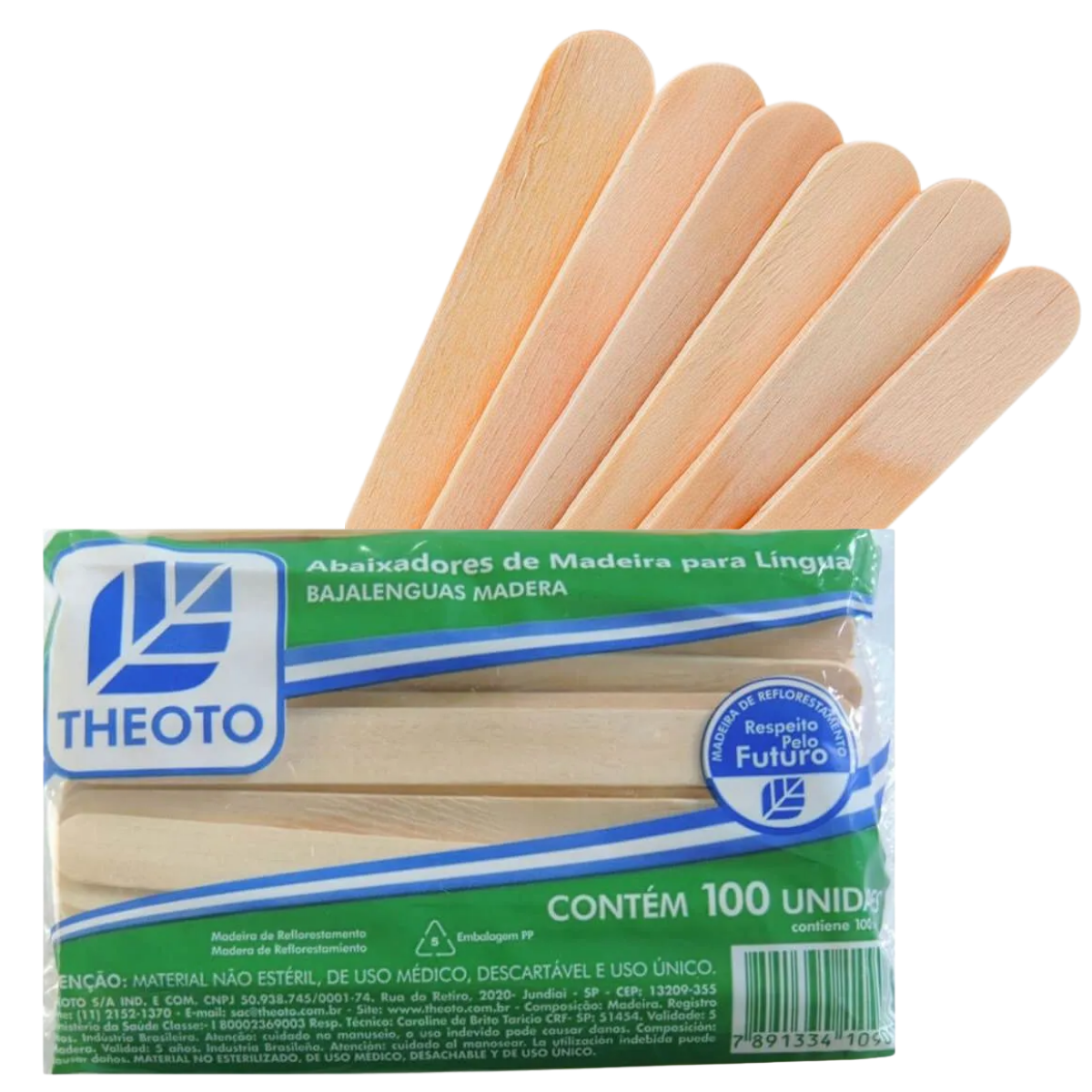 1 Embalagem com 100 Unidades - Abaixador de Língua de Madeira para Exames 14cm x 1,3cm - Theoto