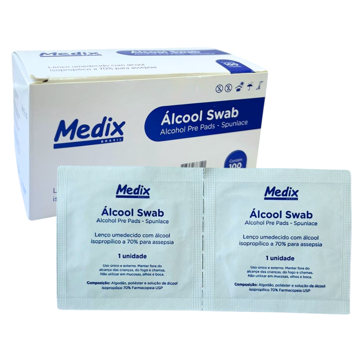 R: O Álcool Swab 70% - Medix são lenços aplicados em álcool isopropílico 70%, ideais para assepsia e higienização em procedimentos médicos e domiciliares.