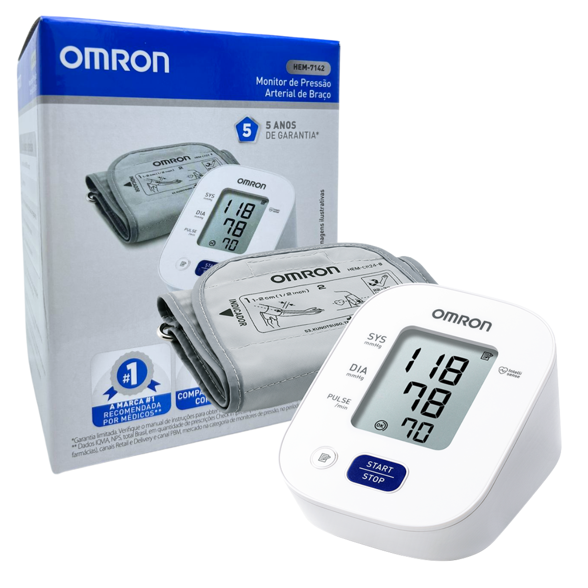 Tecnologia Intellisense™, que ajusta automaticamente o nível ideal de inflação da braçadeira, proporcionando medições mais confortáveis e precisas.