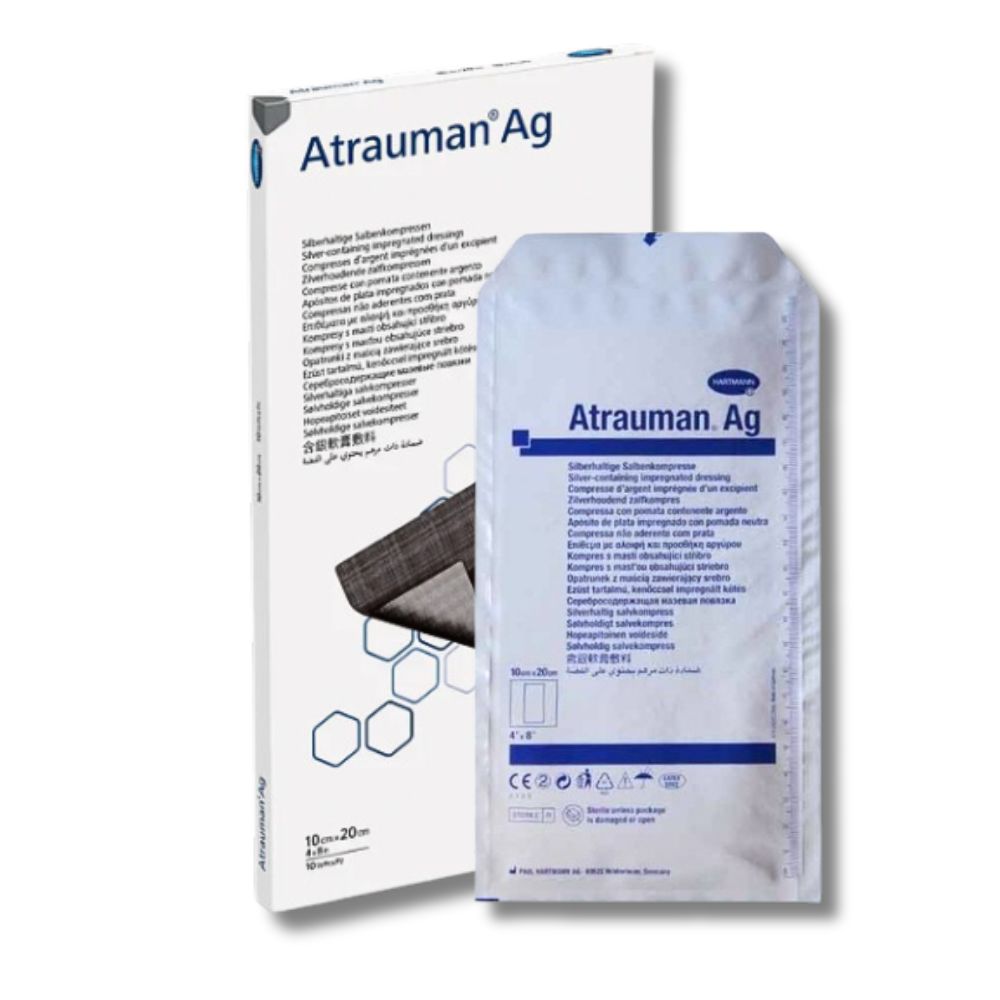A Compressa Atrauman Ag é a escolha ideal para tratamento de feridas infectadas, oferecendo ação antimicrobiana eficiente e proteção contra maceração, com a qualidade da marca Hartmann.