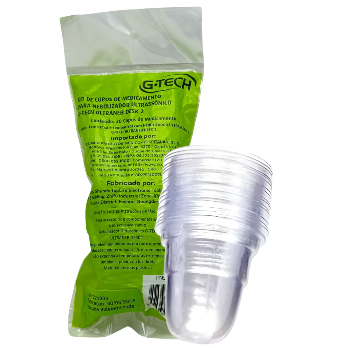 Kit com 20 Copos de Medicamento para Nebulizador Ultrassônico G-Tech Utraneb Desk 2
