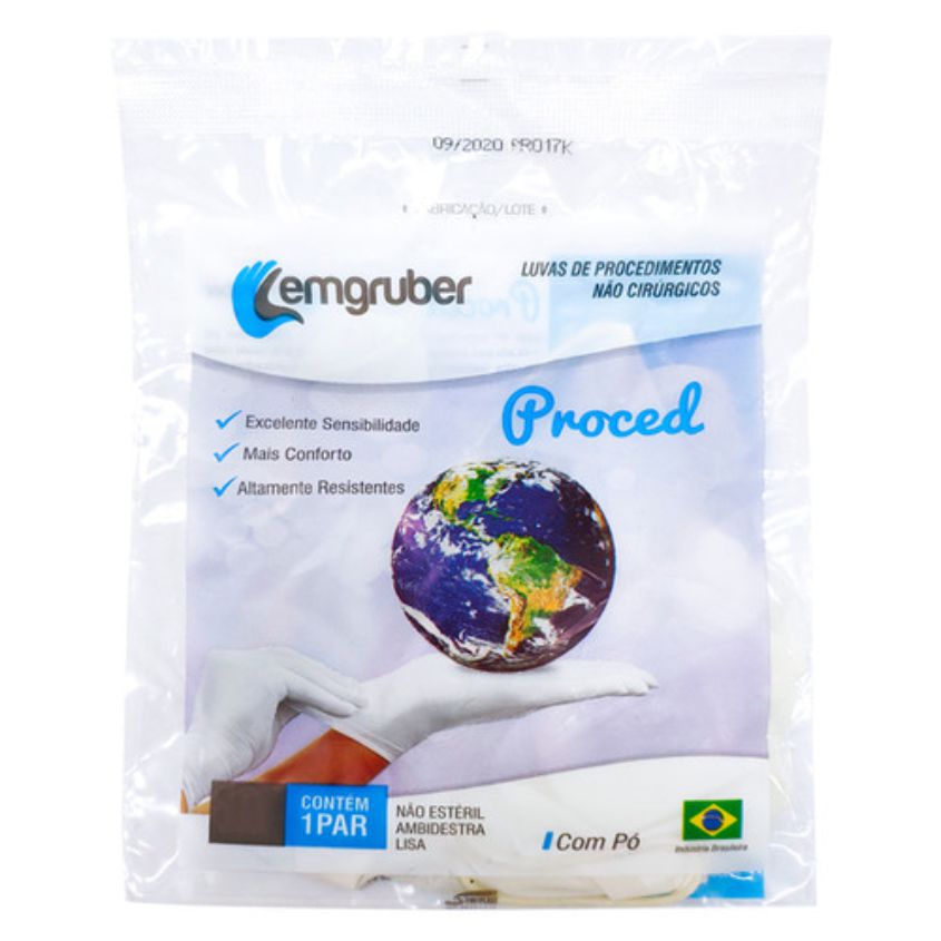 Luva Lemgruber, para procedimento não cirúrgico, à base de látex de borracha natural, lisa, levemente lubrificada com pó bio-absorvível.