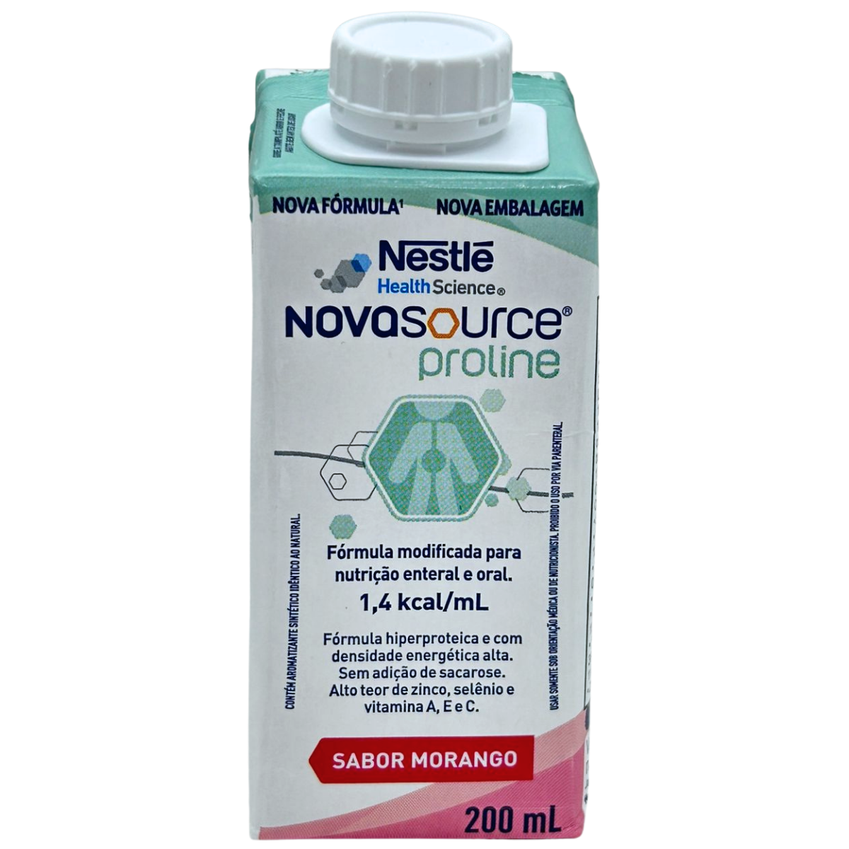 R: Fórmula hiperproteica e hipercalórica (1,4 kcal/ml). Enriquecido com arginina e prolina, aminoácidos importantes para formação de colágeno e cicatrização. Contém vitaminas e minerais antioxidantes, como zinco, selênio, vitaminas A, C e E. Sem adição de sacarose. Sabor morango, pronto para beber. Pode ser usado via oral ou enteral.