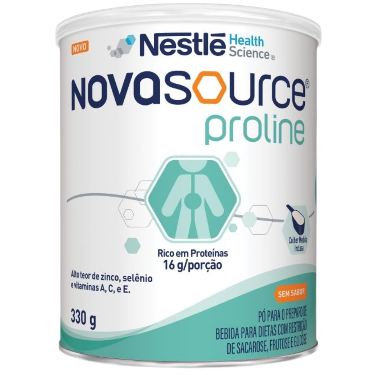Novasource® Proline é um suplemento alimentar em pó com fórmula rica em proteínas (16 g por porção), além de alto teor de zinco, selênio e vitaminas A, E e C. Desenvolvido pela Nestlé Health Science, é ideal para auxiliar na recuperação nutricional e no fortalecimento do organismo.