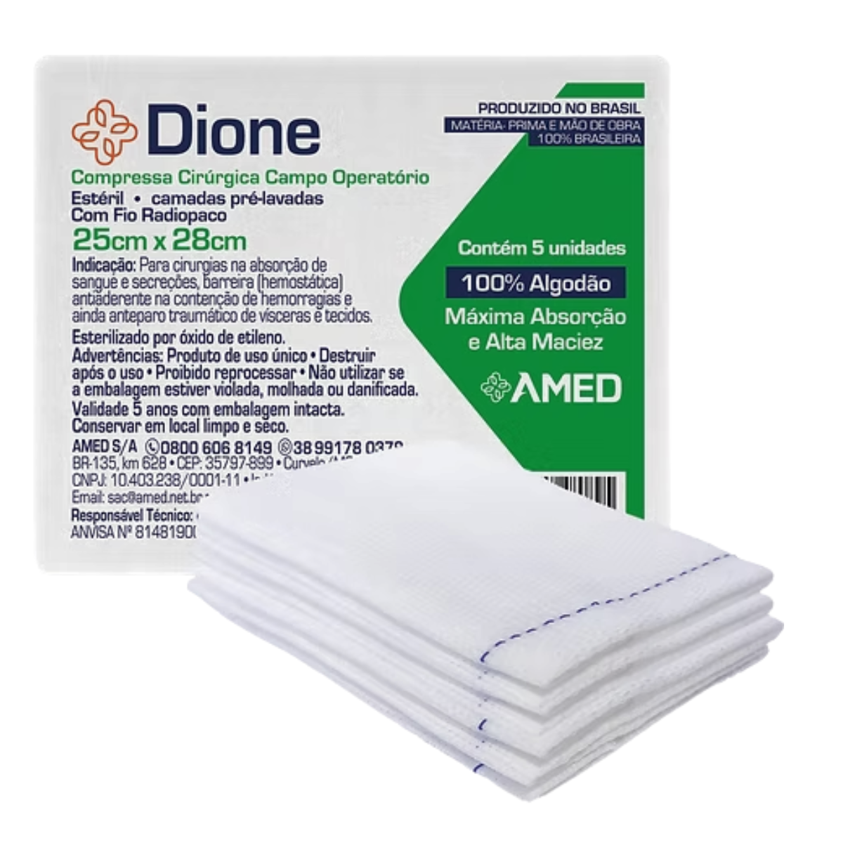 5x Compressa Cirúrgica Estéril Dione com Fio Radiopaco - Amed