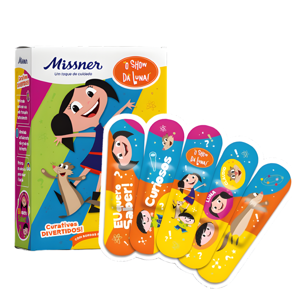 O Curativo Flexível Show da Luna Missner foi desenvolvido especialmente para o cuidado delicado da pele infantil. Com estampas inspiradas na Show da Luna, transforma pequenos machucados em momentos mais leves e tranquilos.