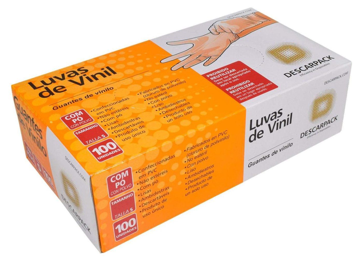 1 x Luva Descartável Vinil P Com Pó Caixa com 100 und. Descarpack